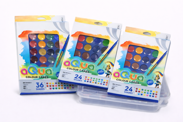 ఆక్వా కలర్ కేక్స్ ప్యాక్స్ అనేది పిల్లల కోసం రూపొందించిన ఒక సృజనాత్మక పెయింటింగ్ సెట్, ఇది చిత్రకళ మరియు సృజనాత్మకతను ప్రోత్సహిస్తుంది. ఈ ప్యాక్స్ రెండు వేరియంట్లలో అందుబాటులో ఉన్నాయి – 24 షేడ్స్ మరియు 36 షేడ్స్, ప్రతి సెట్లో పలు రంగులు మరియు పదార్థాలు ఉన్నాయి. ఇది పిల్లలకు కళా ప్రక్రియలో నూతన అనుభవాలను అందిస్తుంది, ఇది వారి సృజనాత్మకతను మెరుగుపరుస్తుంది మరియు రంగుల పరిమాణాన్ని అభివృద్ధి చేస్తుంది.