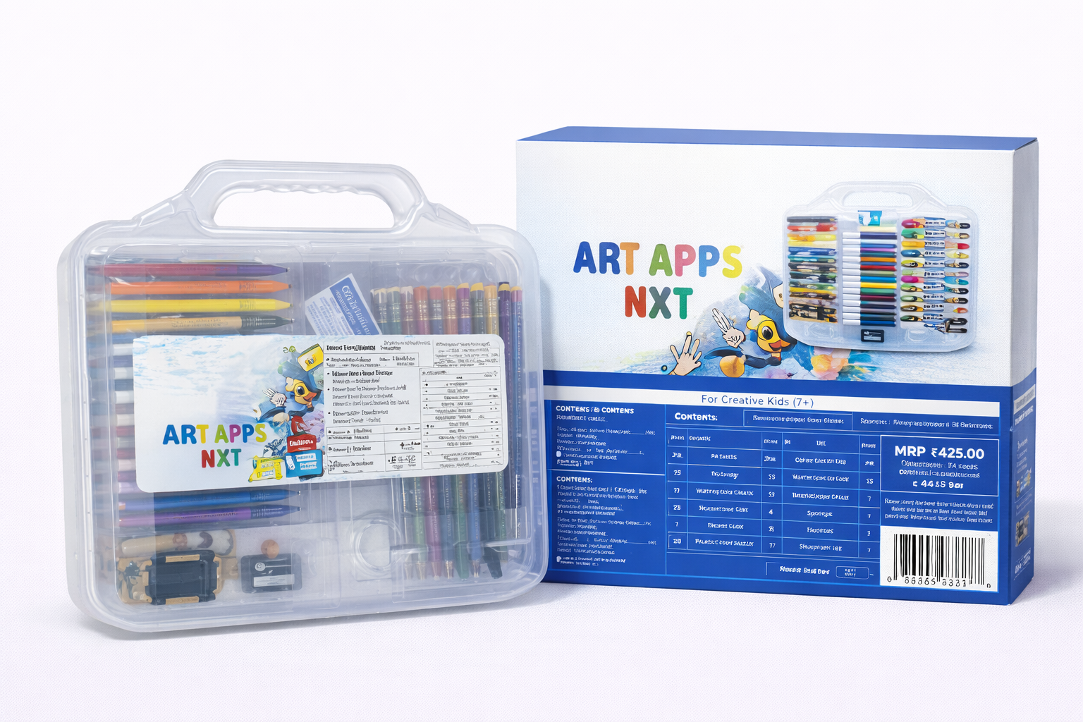 Art Apps NXT Creative Drawing Kit పిల్లల సృజనాత్మకతను వెలికితీసే అద్భుతమైన ఆర్ట్ సెట్. డ్రాయింగ్, కలరింగ్ మరియు స్కూల్ ప్రాజెక్ట్స్ కోసం అవసరమైన అన్ని సామగ్రితో ఈ కిట్ రూపొందించబడింది. పారదర్శకమైన స్టర్డి ప్లాస్టిక్ బాక్స్‌లో అందంగా అమర్చిన ఈ సెట్ పిల్లలకు సులభంగా తీసుకెళ్లేలా హ్యాండిల్‌తో ఉంటుంది.