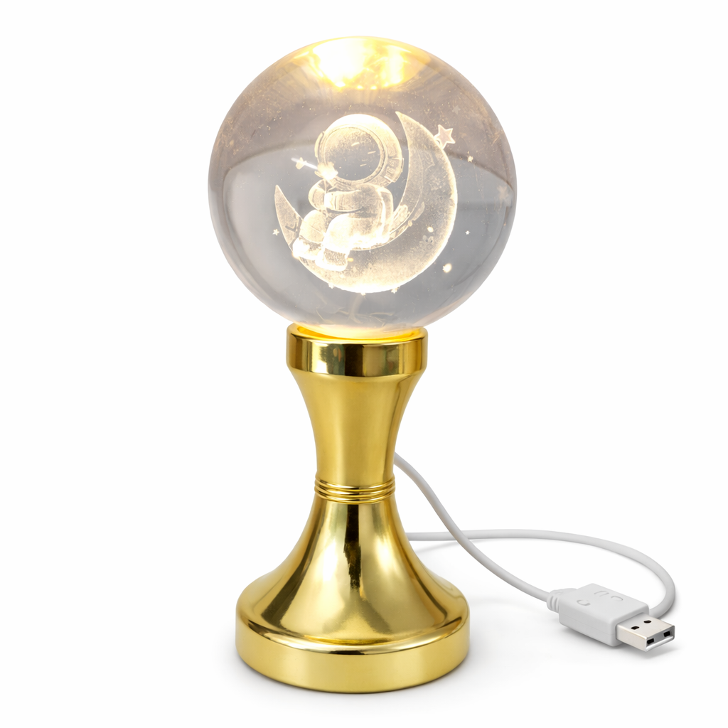 ఈ అస్ట్రోనాట్ 3D క్రిస్టల్ బాల్ LED ల్యాంప్ మీ గదికి ప్రత్యేకమైన మరియు క్రియేటివ్ వెలుగును అందించే అద్భుతమైన డెకరేషన్ ఐటమ్. పారదర్శక క్రిస్టల్ గ్లాస్ బాల్ లోపల చంద్రుడిపై కూర్చున్న అస్ట్రోనాట్ 3D లేజర్ ఎంగ్రేవింగ్ డిజైన్ ఉంటుంది. లైట్ ఆన్ చేసినప్పుడు ఆ డిజైన్ అందంగా మెరిసి మృదువైన వెలుగును ప్రసరింపజేస్తుంది.