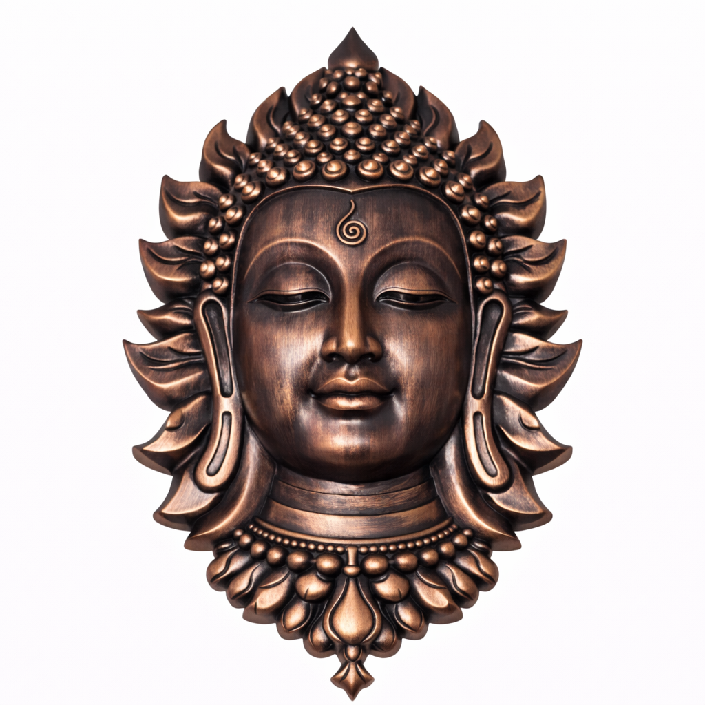 ఈ బుద్ధుడి ముఖ వాల్ ఆర్ట్ శాంతి, సమతుల్యత మరియు ఆధ్యాత్మికతకు ప్రతీకగా నిలిచే అందమైన అలంకరణ వస్తువు. కాపర్ మరియు బ్రౌన్ టోన్ ఫినిష్లో రూపొందించిన ఈ డెకర్ ఎంతో రాయల్ మరియు క్లాసిక్ లుక్ను అందిస్తుంది. బుద్ధుడి ప్రశాంతమైన ముఖ భావం మరియు మూసిన కళ్ల రూపం ధ్యాన స్థితిని సూచిస్తుంది.