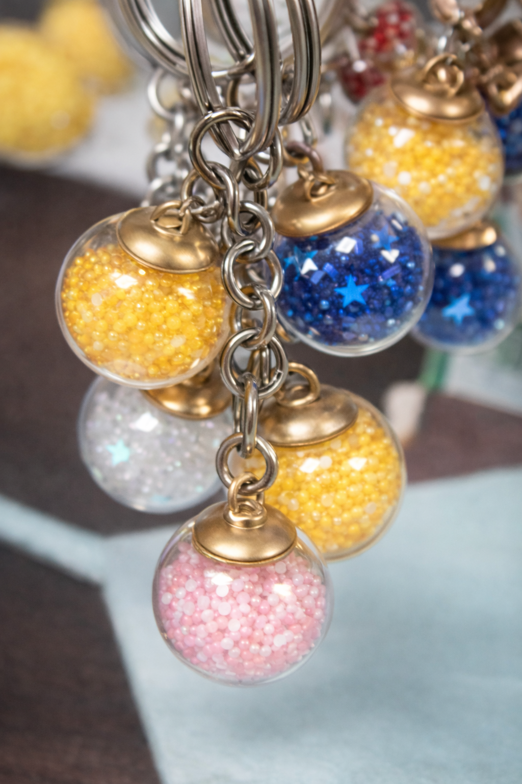 ఈ Colorful Glitter Globe Keychains చాలా ఆకర్షణీయంగా మరియు ట్రెండీగా రూపొందించబడ్డాయి. చిన్న గ్లాస్ బాల్ ఆకారంలో ఉండే ఈ కీచైన్స్ లోపల రంగురంగుల ముత్యాలు, గ్లిట్టర్ పార్టికల్స్ మరియు చిన్న స్టార్స్ తో అలంకరించబడ్డాయి. గోల్డ్ ఫినిష్ క్యాప్ మరియు స్ట్రాంగ్ మెటల్ రింగ్ వీటికి ఎలిగెంట్ లుక్ను ఇస్తాయి.