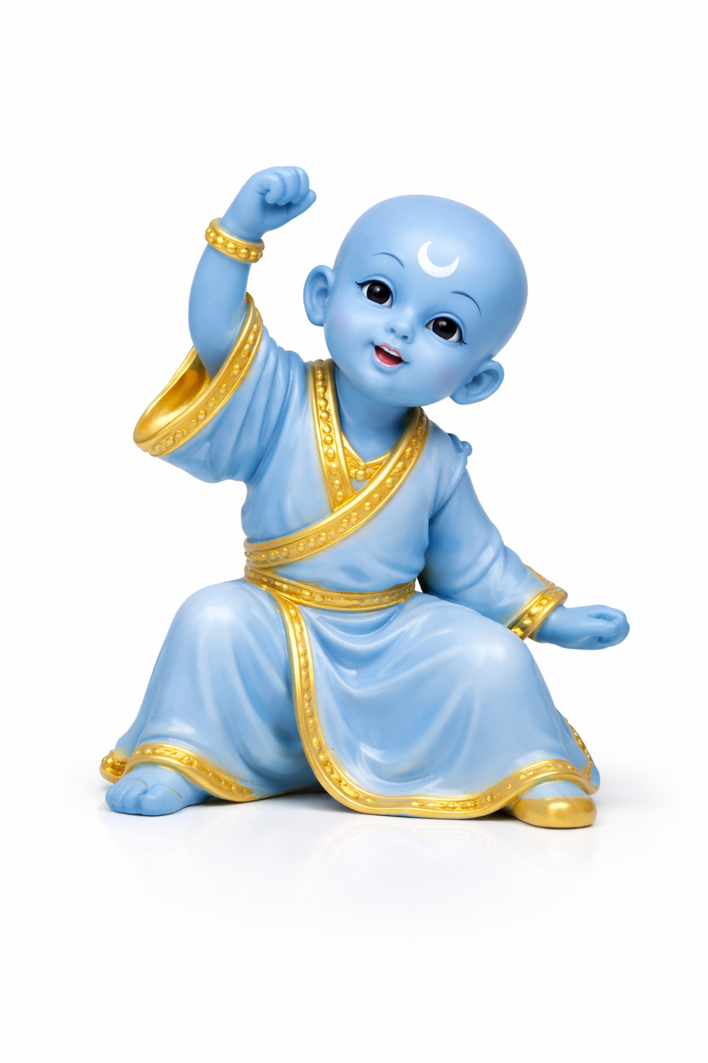 ఈ Divine Baby Krishna Idol మీ ఇంటికి ఆధ్యాత్మికత మరియు ఆనందాన్ని తీసుకువచ్చే అద్భుతమైన విగ్రహం. నీలి రంగులో ఆకర్షణీయంగా రూపొందించిన ఈ బాలకృష్ణ విగ్రహం, బంగారు అలంకరణలతో మరింత అందంగా మెరిసిపోతుంది. చేతిని పైకి ఎత్తి చిరునవ్వుతో ఉన్న ఈ రూపం భక్తి, ఆనందం మరియు పాజిటివ్ ఎనర్జీకి ప్రతీకగా నిలుస్తుంది.