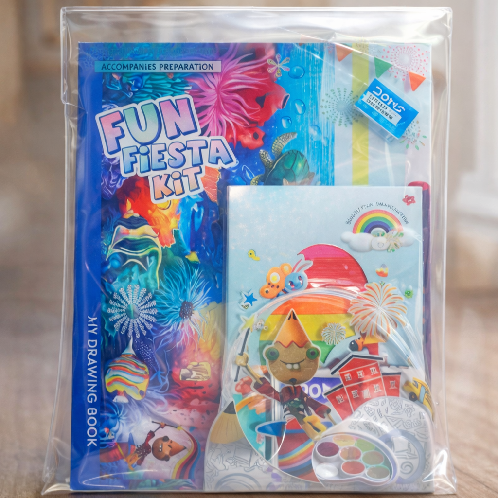 ఈ Fun Fiesta Art Kit చిన్నారుల సృజనాత్మకతను పెంపొందించేందుకు ప్రత్యేకంగా రూపొందించబడిన కలర్ఫుల్ ఆర్ట్ సెట్. ఆకర్షణీయమైన “Fun Fiesta” డిజైన్ కవర్తో ఉన్న ఈ కిట్ పిల్లలను వెంటనే ఆకట్టుకుంటుంది. ఇందులో డ్రాయింగ్ బుక్, వాటర్ కలర్స్, పెన్సిల్స్, ఇతర అవసరమైన ఆర్ట్ సామగ్రి ఒకే ప్యాక్లో అందుబాటులో ఉంటుంది.