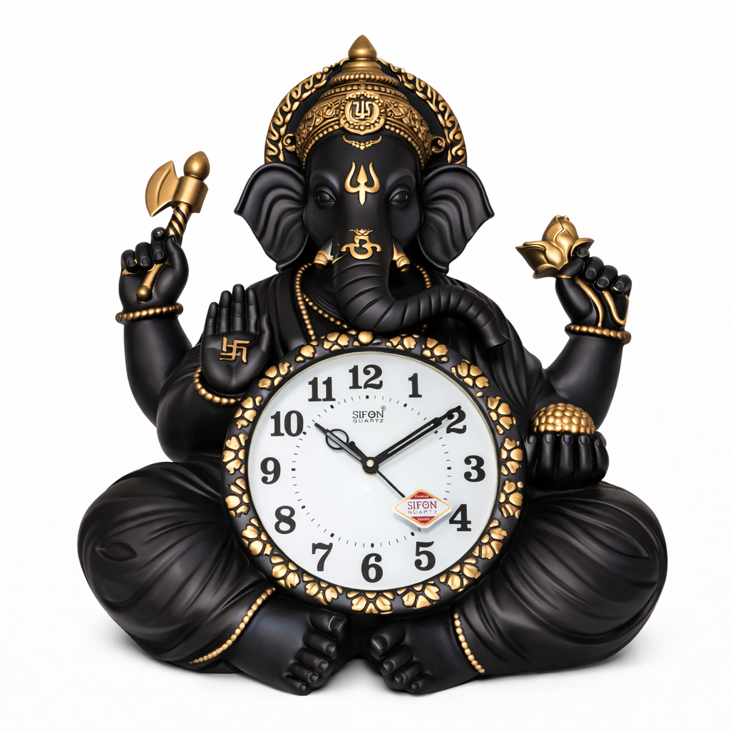 గణపతి దేవుడు విఘ్నాలను తొలగించే దేవుడిగా పూజించబడతారు. అందువల్ల ఈ క్లాక్ను ఇంటి హాల్, పూజా గది లేదా ఆఫీస్ టేబుల్పై ఉంచడం వలన శుభం మరియు సానుకూల శక్తి పెరుగుతుందని నమ్మకం. ఇది సమయాన్ని తెలియజేసే సాధనమే కాకుండా ఒక శుభప్రదమైన అలంకరణ వస్తువుగా కూడా ఉపయోగపడుతుంది.