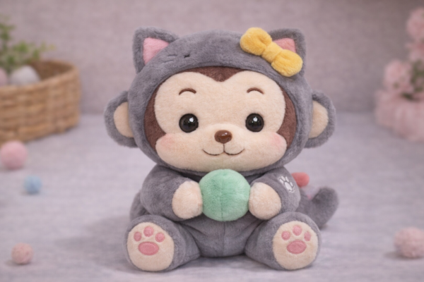 ఈ Kitty Monkey Plush Toy ఎంతో అందంగా మరియు ప్రత్యేకమైన డిజైన్తో రూపొందించబడిన సాఫ్ట్ టాయ్. గ్రే కలర్ క్యాట్ కాస్ట్యూమ్ ధరించిన ఈ చిన్న కోతి టాయ్ పిల్లలను వెంటనే ఆకట్టుకుంటుంది. తలపై చిన్న బో డిజైన్, పింక్ పా ప్రింట్స్ మరియు చేతిలో చిన్న బంతి ఉండటం వల్ల ఇది మరింత క్యూట్గా కనిపిస్తుంది.
