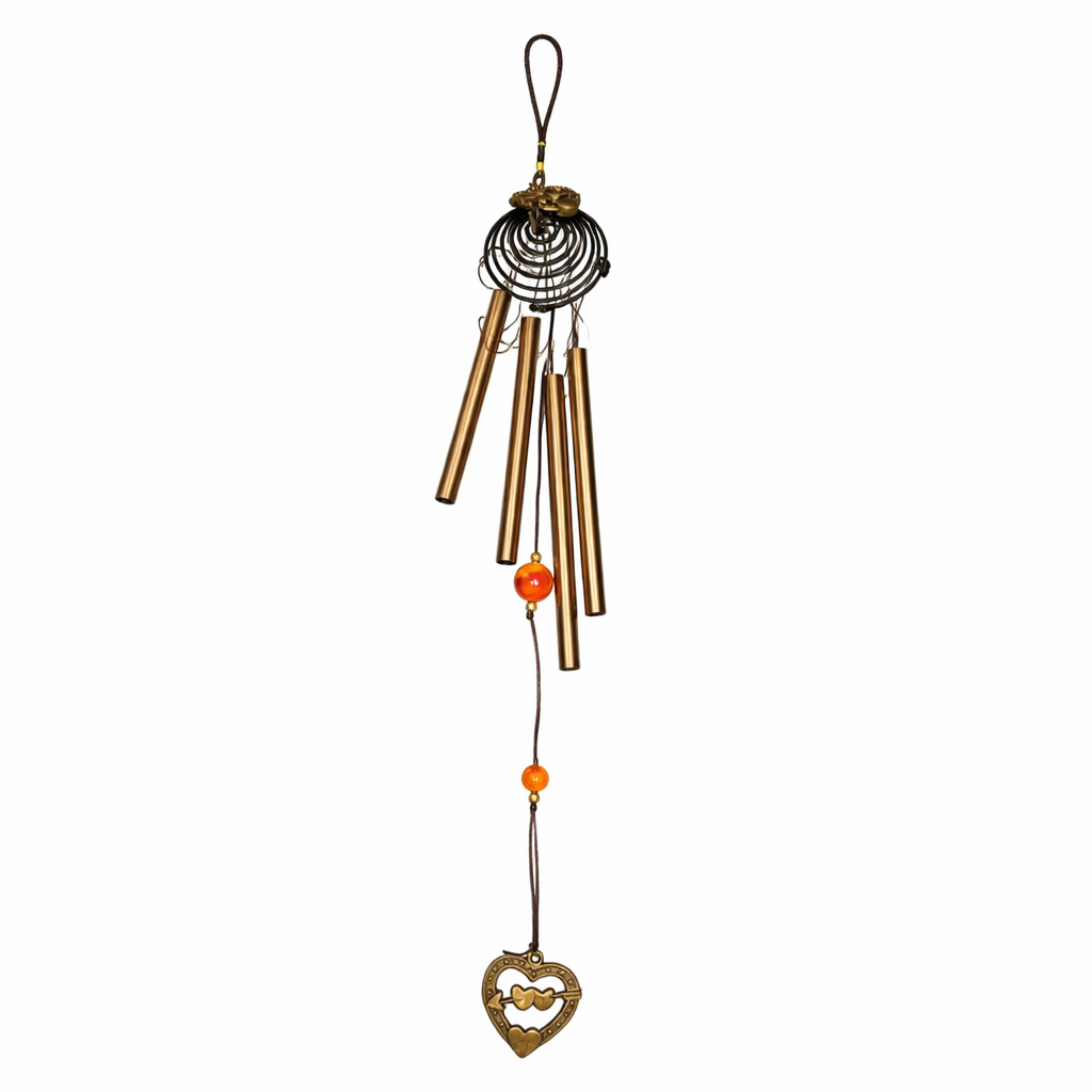 ఈ విండ్ చైమ్‌లో బంగారు రంగు మెటల్ పైపులు ఉండి, దిగువన హార్ట్ ఆకారపు పెండెంట్ మరియు అందమైన బీడ్స్‌తో అలంకరించబడింది. దీనివల్ల ఇది కేవలం శబ్దం కోసం మాత్రమే కాకుండా ఒక స్టైలిష్ డెకర్ ఐటమ్‌గా కూడా ఉపయోగపడుతుంది. తలుపు దగ్గర, బాల్కనీ, కిటికీ పక్కన లేదా పూజ గదిలో వేలాడదీయడానికి ఇది చాలా అనుకూలంగా ఉంటుంది.