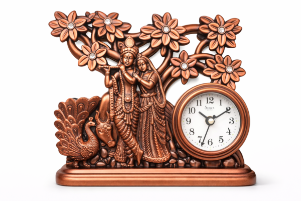 ఈ రాధా కృష్ణ కాపర్ ఫినిష్ టేబుల్ క్లాక్ మీ ఇంటి అలంకరణను మరింత ప్రత్యేకంగా మార్చి, ప్రతి రోజూ ఆధ్యాత్మిక ఆనందాన్ని అందిస్తుంది.