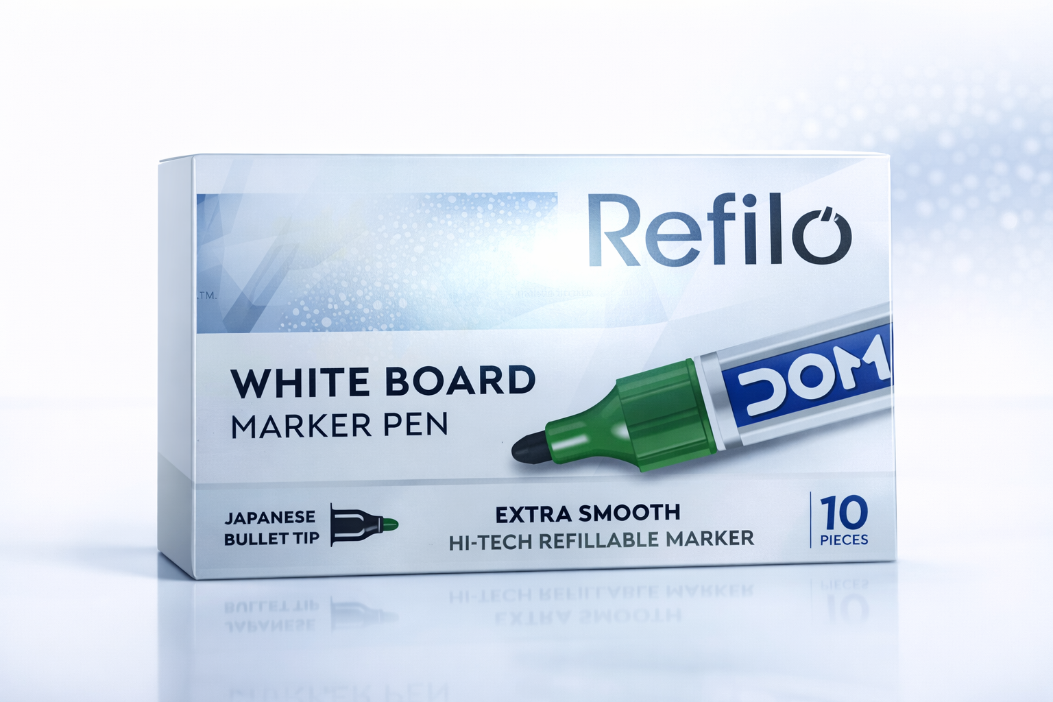 Refilo మార్కర్ హై టెక్ రీఫిల్లబుల్ డిజైన్తో వస్తుంది. అవసరమైతే రీఫిల్ మార్చి మళ్లీ ఉపయోగించవచ్చు. దీని వల్ల దీర్ఘకాలం ఉపయోగించుకోవచ్చు మరియు ఖర్చు తగ్గుతుంది. పర్యావరణానికి కూడా ఇది మంచి ఎంపిక.