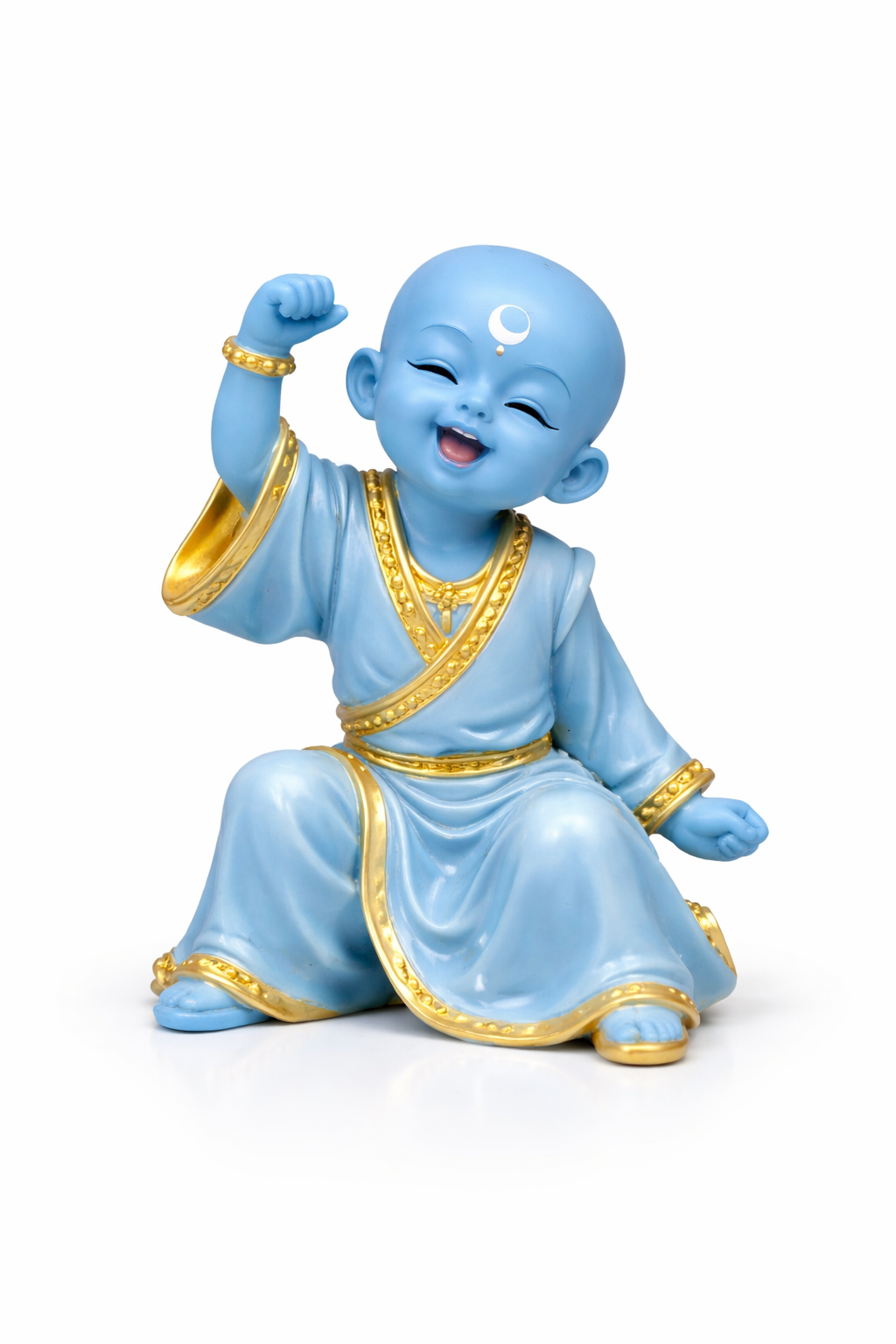 ఈ Smiling Baby Krishna Idol మీ ఇంటికి ఆధ్యాత్మికతతో పాటు ఆనందాన్ని తీసుకువచ్చే అద్భుతమైన విగ్రహం. నీలి రంగులో ఆకర్షణీయంగా డిజైన్ చేయబడిన ఈ బాలకృష్ణ విగ్రహం, బంగారు అలంకరణలతో మరింత అందంగా కనిపిస్తుంది. చిరునవ్వుతో చేతిని పైకి ఎత్తి ఉన్న ఈ రూపం సంతోషం, శాంతి మరియు పాజిటివ్ ఎనర్జీకి ప్రతీకగా నిలుస్తుంది.