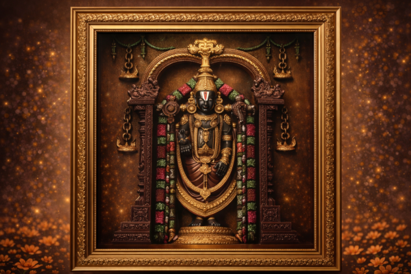 శ్రీ వేంకటేశ్వర స్వామివారి రాజసమైన దివ్య రూపం – ఇంటికి శుభం, ఐశ్వర్యం మరియు ఆధ్యాత్మిక శాంతిని అందించే ప్రత్యేక ఫ్రేమ్ ఆర్ట్.