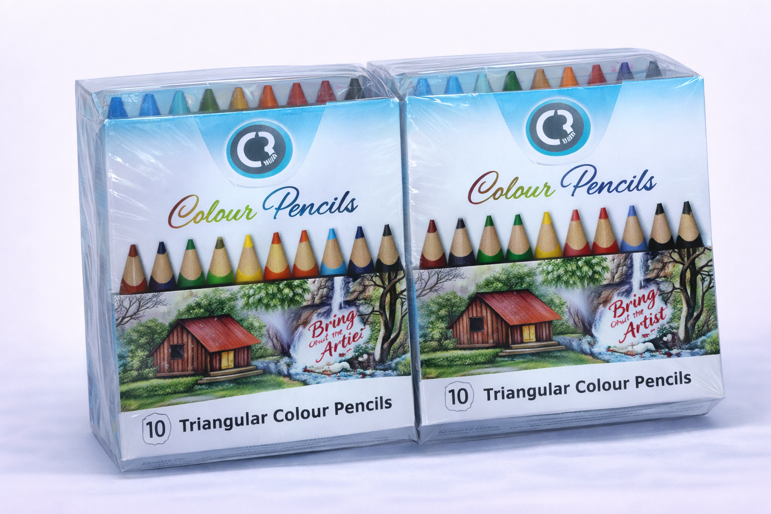 ఈ రంగుల పెన్సిల్స్ 10 ప్యాక్ లో అందుబాటులో ఉంటాయి, వాటి ప్రత్యేకమైన త్రిభుజ ఆకారం కలిగి ఉండడం వల్ల వీటి నిర్వహణ సులభం. పెన్సిల్స్ వివిధ రంగుల్లో ఉంటాయి, ఇవి సృజనాత్మకంగా పనిచేయడానికి అనుకూలంగా ఉంటాయి. ఇవి విద్యార్థులకు, కళాకారులకు మరియు ఎవరైనా అంగీకరించిన వ్యక్తులకు అనువైనవి. ప్రతి పెన్సిల్ యొక్క రంగు ఎక్కువ కాలం నిలిచేలా ఉంటుంది, వాటి రంగు సరళమైన మరియు స్పష్టమైనది.