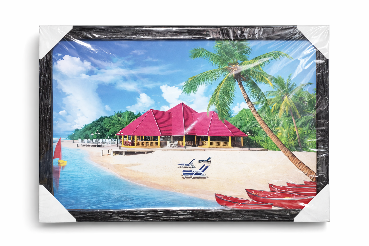 Tropical Beach House Wall Frame మీ ఇంటికి ప్రశాంతత, అందం మరియు హాలిడే ఫీలింగ్ను తీసుకువచ్చే అద్భుతమైన డెకరేటివ్ ఉత్పత్తి. ప్రతి గదికి తాజా మరియు ఉల్లాసభరితమైన వాతావరణాన్ని అందిస్తుంది.