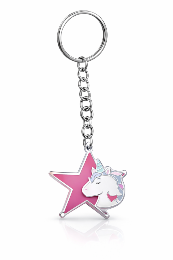 ఈ Unicorn Star Keychain చిన్నారుల హృదయాలను గెలుచుకునే అందమైన డిజైన్తో రూపొందించబడింది. పింక్ స్టార్ బ్యాక్గ్రౌండ్తో ఉన్న క్యూట్ యూనికార్న్ ఫేస్ ఈ కీచైన్కు ప్రత్యేకమైన ఆకర్షణను ఇస్తుంది. మెటల్ ఫినిషింగ్తో బలమైన నిర్మాణం కలిగి ఉండటం వల్ల దీర్ఘకాలం వాడుకోవచ్చు. కలర్ ఫినిషింగ్ చాలా క్లియర్గా, ఆకర్షణీయంగా ఉంటుంది.