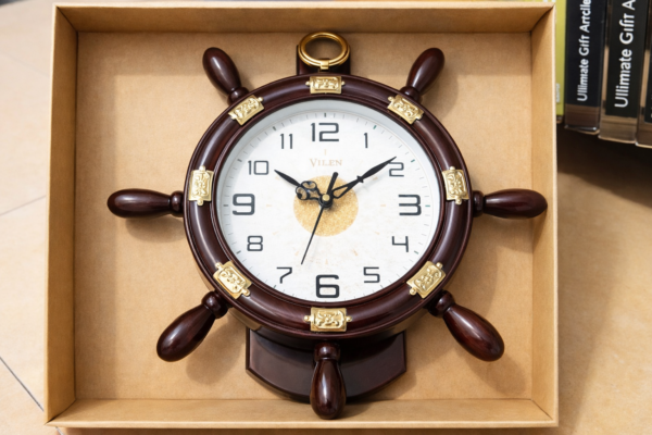 ఈ క్లాక్ బలమైన మరియు నాణ్యమైన మెటీరియల్తో తయారు చేయబడింది. దీర్ఘకాలం ఉపయోగించుకునేలా మన్నికైన నిర్మాణం కలిగి ఉంది. షిప్ వీల్ డిజైన్ కారణంగా ఇది సముద్రం, ట్రావెల్ లేదా అడ్వెంచర్ థీమ్ ఇష్టపడేవారికి ప్రత్యేకంగా నచ్చుతుంది. హోటల్, రెస్టారెంట్, ఆఫీస్ రిసెప్షన్ లేదా హోమ్ డెకర్లో ఒక హైలైట్ పీస్గా నిలుస్తుంది.