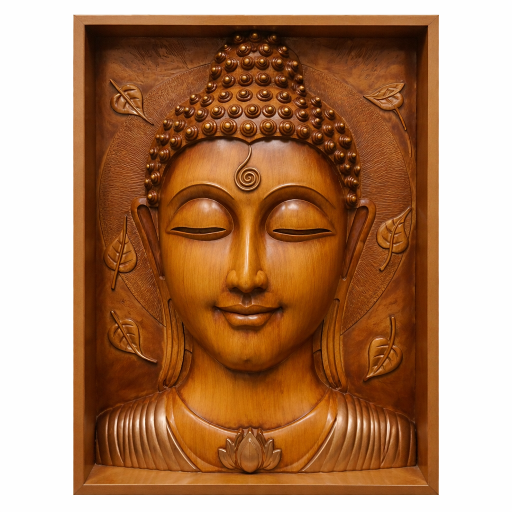 ఈ అద్భుతమైన “వుడెన్ బుద్ధ వాల్ ప్యానెల్” ప్రశాంతత, ధ్యానం మరియు ఆధ్యాత్మికతకు ప్రతీకగా రూపొందించబడింది. బుద్ధుని శాంతమైన ముఖకవళికలు, మూసుకున్న కళ్ళు మరియు సున్నితమైన చిరునవ్వు మనసుకు ఎంతో హాయిని కలిగిస్తాయి. ఈ డిజైన్లో ఉన్న సహజ వుడ్ ఫినిష్ మరియు సున్నితమైన చెక్కల శైలి దీనికి ప్రత్యేకమైన కళాత్మక అందాన్ని ఇస్తుంది.