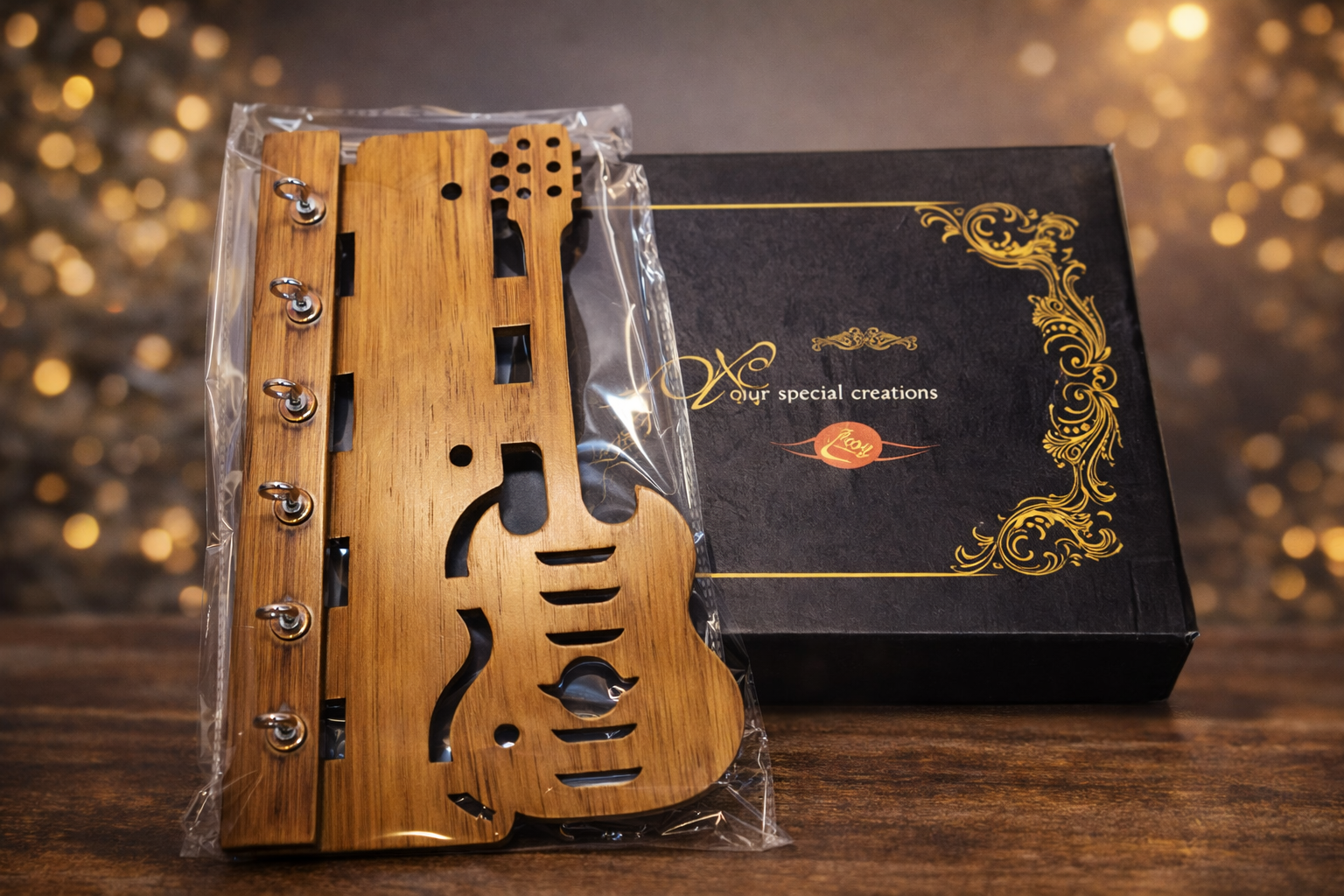 గిటార్ డిజైన్లో ఉన్న కట్ వర్క్ మరియు ఫినిషింగ్ ఎంతో నాజూకుగా రూపొందించబడింది. సహజమైన వుడ్ టెక్స్చర్ దీనికి రస్టిక్ మరియు క్లాసిక్ లుక్ ఇస్తుంది. దీనిపై అమర్చిన మెటల్ హుక్స్ మీ ఇంటి కీలు, కార్ కీలు, ఆఫీస్ కీలు వంటి వాటిని సురక్షితంగా ఉంచేందుకు ఉపయోగపడతాయి. ఒకే చోట అన్ని కీలు ఉంచుకోవడం వల్ల అవి ఎక్కడో పోయే సమస్య ఉండదు.